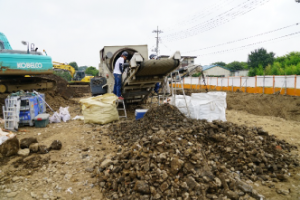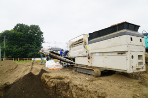 通常地中障害物の撤去は、土砂ごと処分する事を多く目にしますが、弊社では可能な限り敷地内分別を行います。