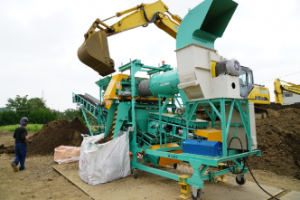 一般的な敷地内分別は①重機を用いた1次選別を軸とし埋設物の内容や量、敷地の大きさに応じて選別機器を用います。