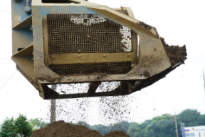 ①重機による1次篩い分け